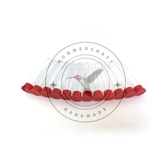 Hummingbird feeder test tubes with red cap, Set of 12.