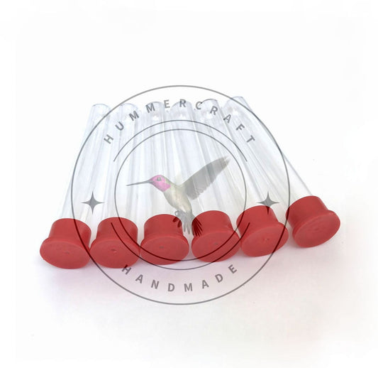 Replacement glass test tube for DIY hummingbird feeders with red cap, Set of 6.