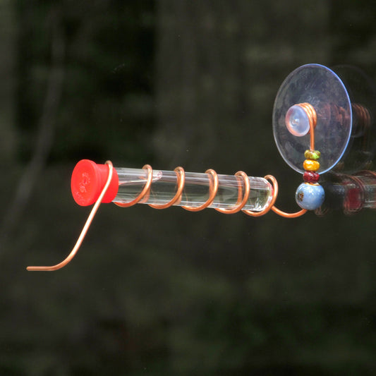 Test Tube Hummingbird feeder for window, Suction cup mount and Copper hummingbird feeder.
