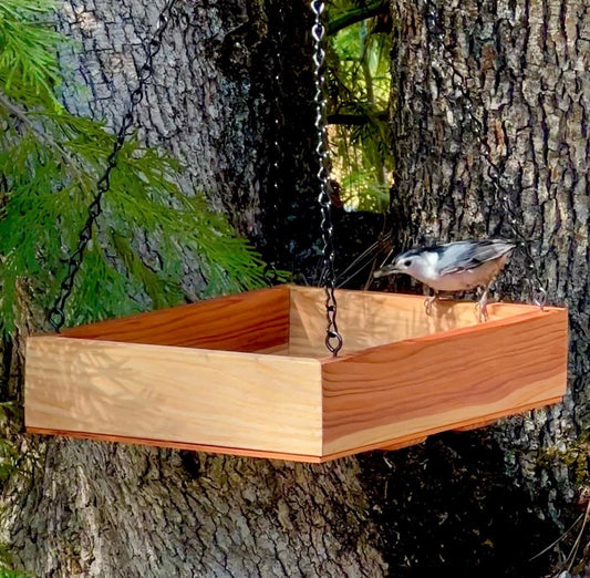 Redwood Platform Tray Bird Feeder, Large hanging bird feeder, includes seed.