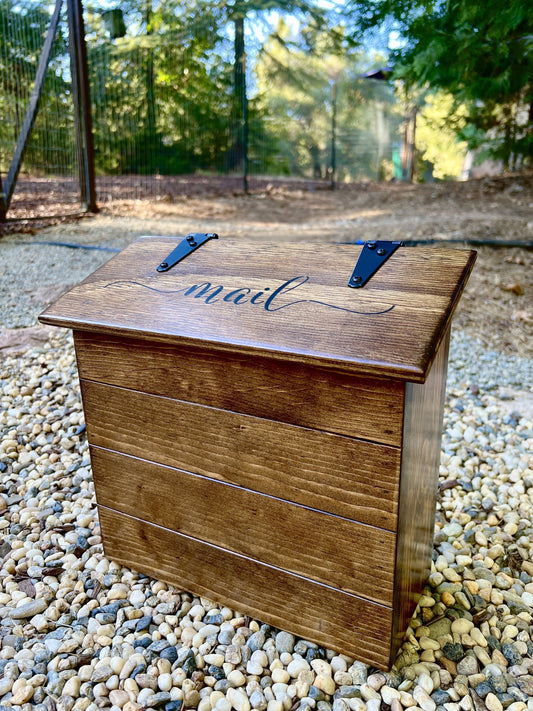 Wall mount mailbox, handmade rustic wood mailbox for covered porch with "mail" on lid