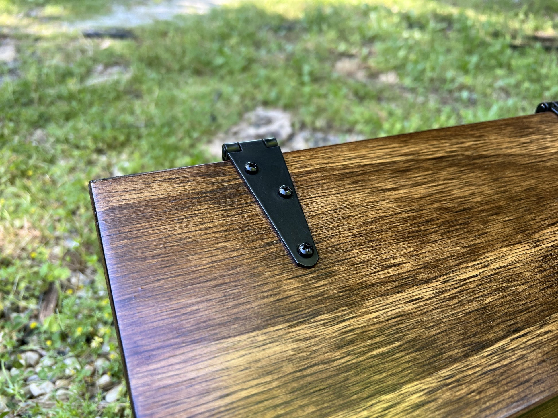The items made in my shop are handmade solely by me. I live in a remote location in the California foothills, and make everything with limited tools. Wood is hand picked and finish work is done by hand. Each item I ship out has to pass my meticulous attention to detail.